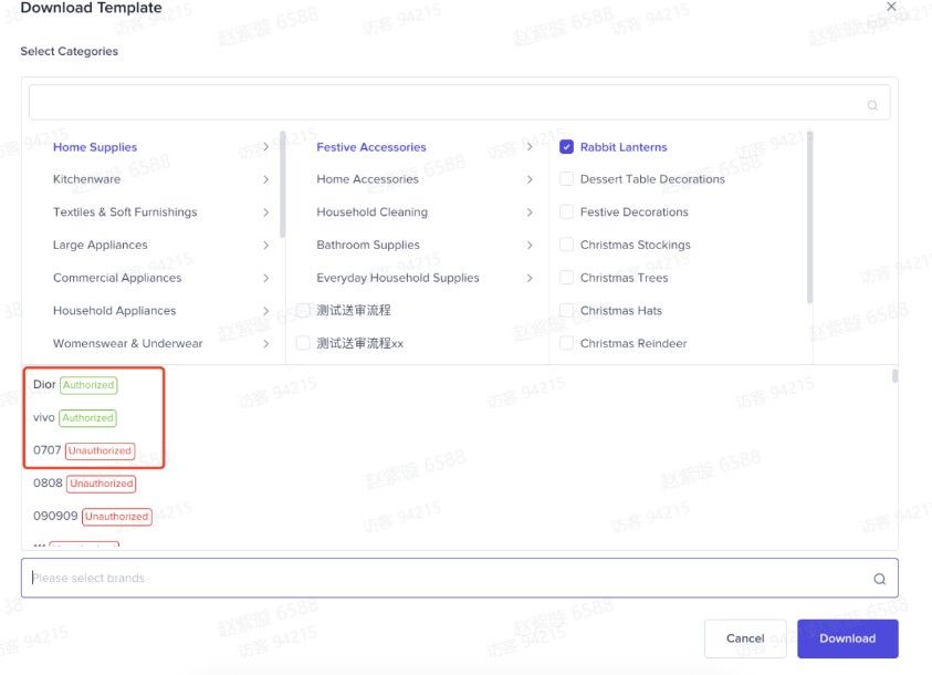 品牌(可通过关键字搜索,在平台的品牌池中快速选择。) 注意: