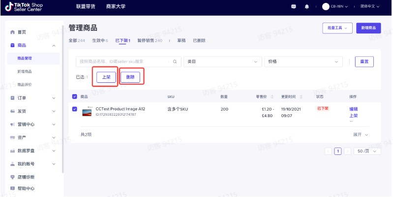 ⽅式2: 打开https://seller.tiktokglobalshop.com/product,点击商品>管理商品->添加新商品