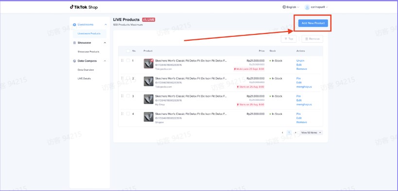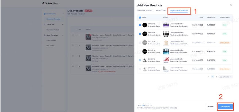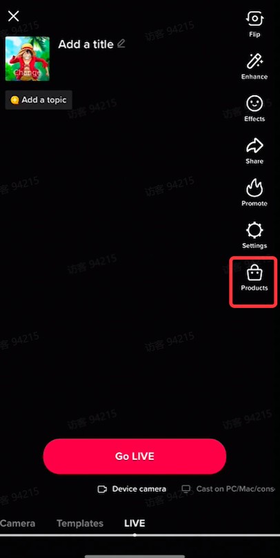 点击【product】按钮在直播中添加商品