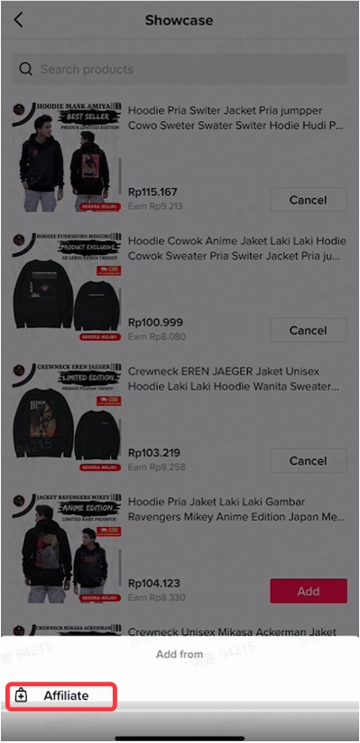 商家也可以从affiliate 中选择商品