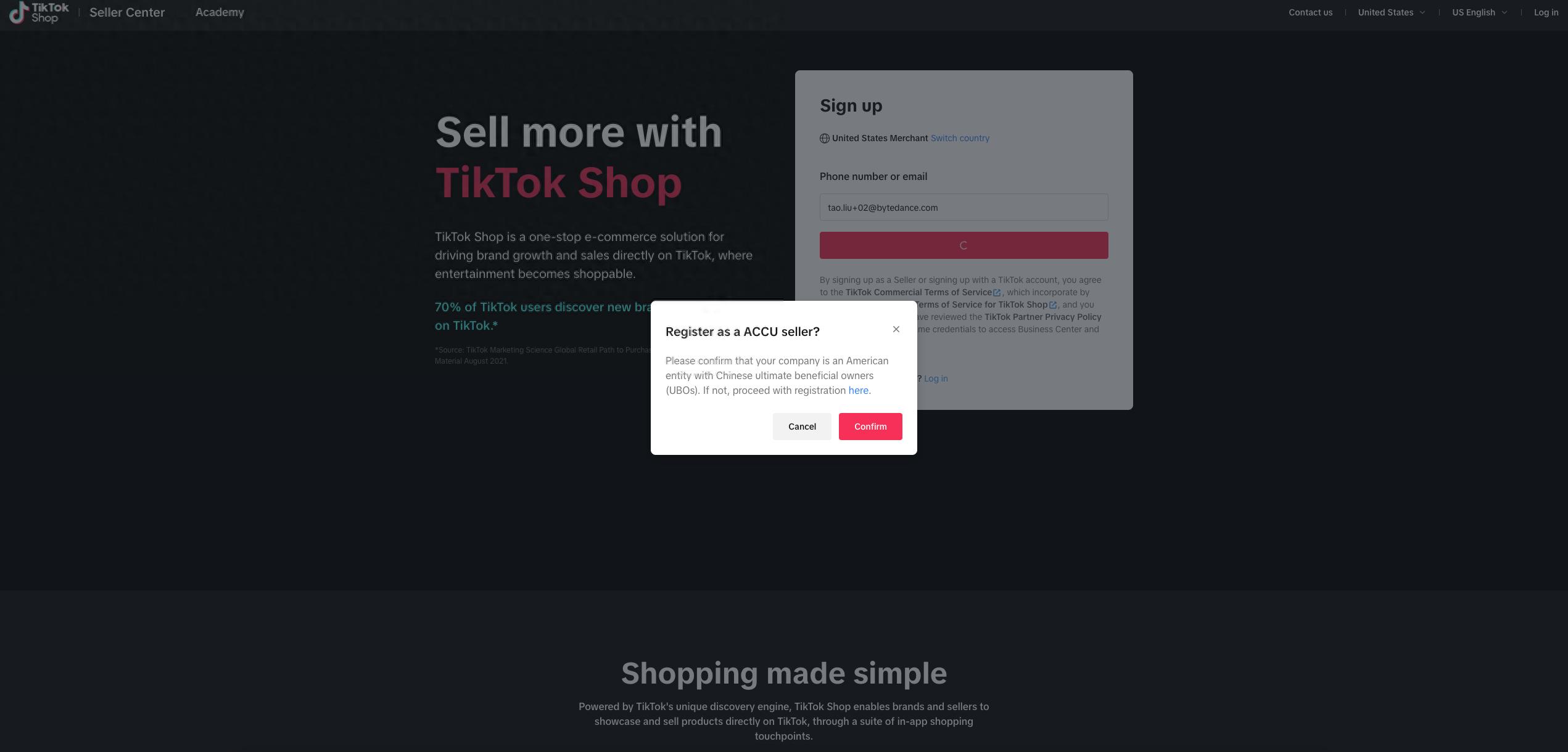 首先,要在TikTok商店开设账户,商家需要访问TikTok Shop Seller Center,并使用手机号码或电子邮件进行注册,注册地区是否设置为美国。