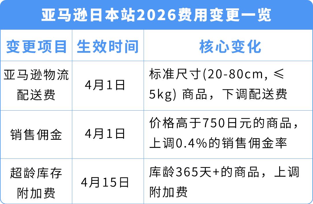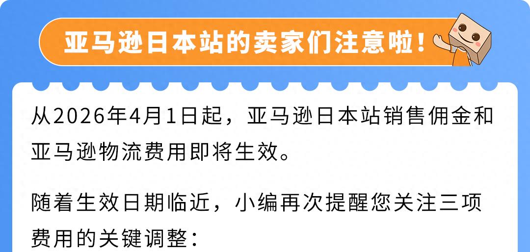 注意!亚马逊日本站2026年4月起多项费用迎调整
