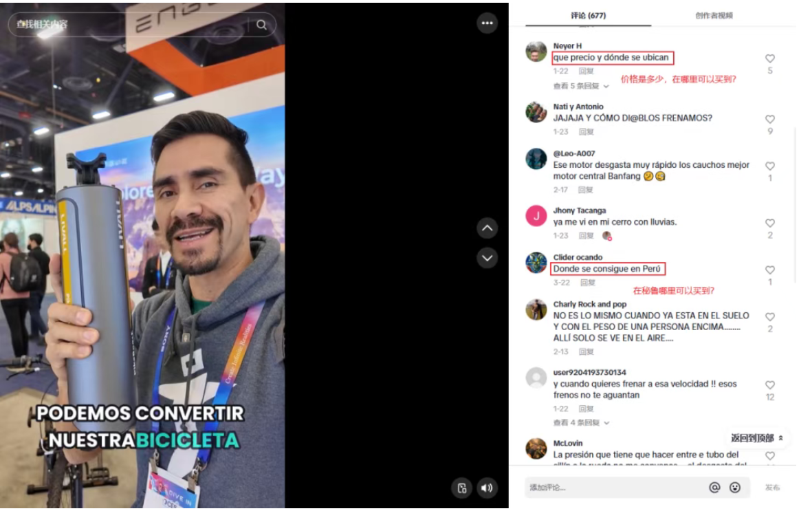 LIVALL在TikTok主攻垂直领域达人。科技博主@ivanosio 为其Pika Boost自行车助力器拍摄的视频,直接去CES 2025线下展会实地拍摄,现场讲解如何将普通自行车改造成电动车,安装过程、骑行效果一目了然。