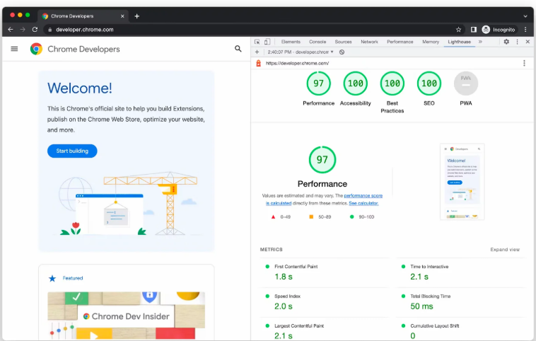 要检查网站的响应速度,请使用 Google 的 Lighthouse,这是一个用于提高网页质量的自动化工具。