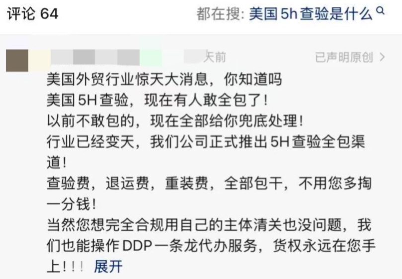 “美国外贸行业惊天大消息,你知道吗美国5H查验,现在有人敢全包了!