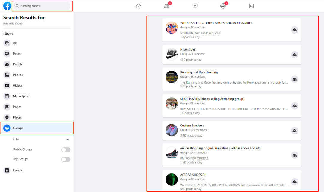 ①通过产品关键词查找:比如你的产品是跑步鞋(running shoes),群组里的不是客户就是同行。