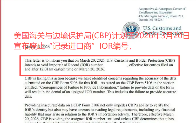 除了持续升级的5H查验,美国海关与边境保护局(CBP)在周六又抛出重磅通知:3月20日将正式启动新一轮进口商身份核查行动,部分进口商记录号(IOR)将在当日起被作废。