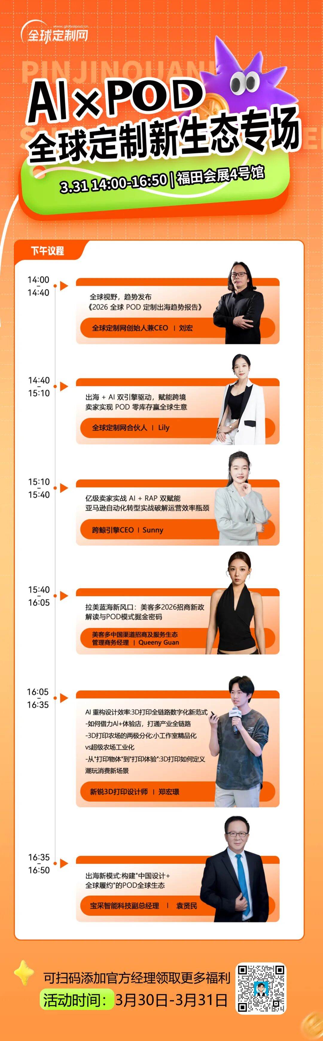 3月31日,深圳福田,全球定制网 × 出海网倾力打造 「2026 POD 定制出海生态论坛」!