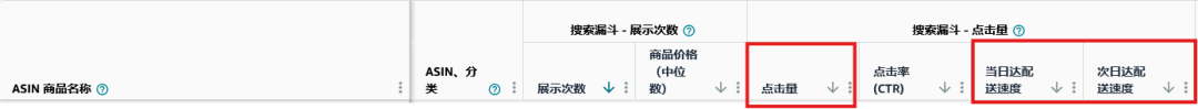 菜单→品牌→品牌分析报告→搜索分析→搜索目录绩效→点击“自定义列”→勾选“搜索漏斗-点击量”中的“当日达配送速度”及“次日达配送速度”。