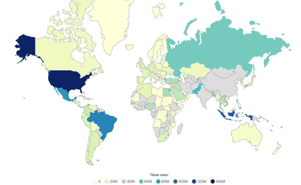 这些 TikTok 用户统计数据显示了该社交媒体平台在全球范围内的受欢迎程度。虽然北美拥有庞大的用户群体,但活跃的 TikTok 用户中也有相当一部分来自亚太地区、拉丁美洲和中东。