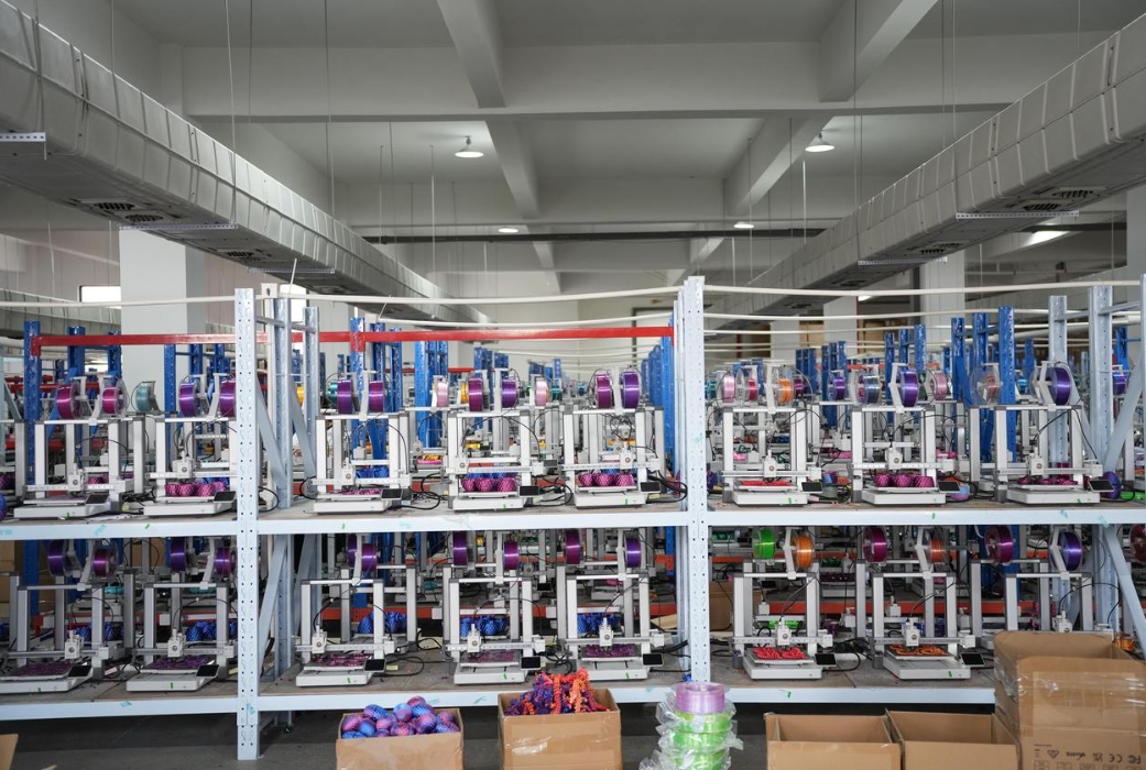走进超印工厂,800 台多色 3D 打印机分区分组,通过仓管家系统智能管控 —— 绿色显示正常打印、蓝色代表任务完成、橙色是暂停状态、黑灰色为空闲,24 小时不间断生产,这就是国内中型 3D 打印工厂的真实产能。没有起订量,一件也能做,一件也能发,卖家只需提供创意图,工厂即可完成建模、打样、生产、质检、代贴标、打包、发货一条龙服务,卖家只需专注前端营销。