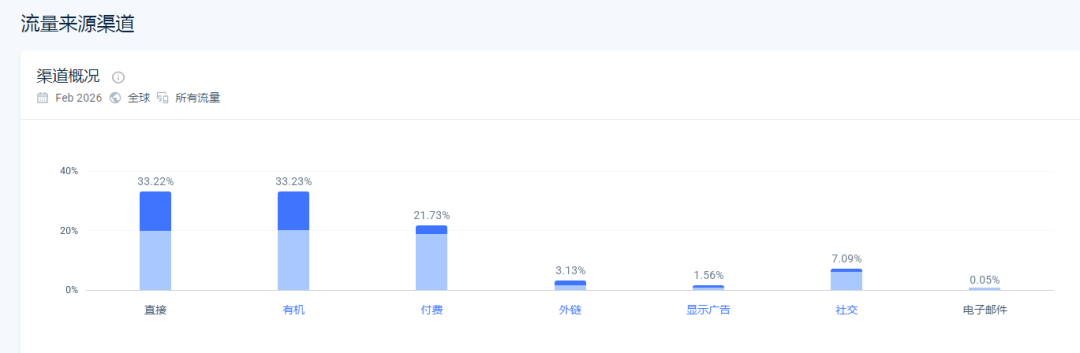 作为工具品牌,WORX独立站的主要流量来自于搜索、推荐等直接流量,其中自然搜索主要是通过搜索品牌相关的关键词进入网站,而付费搜索也是设置品牌相关的精准关键词——这表明站内80%以上的用户都是品牌的潜在用户。