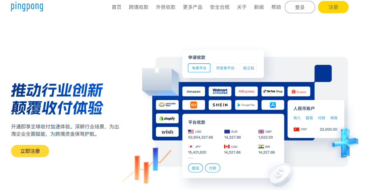 PingPong 定位为企业全球化的 “支付底座”,以跨境支付服务为依托,持续链接全球贸易中的广泛生态,赋能企业加速实现全球增长,跨境电商新用户在使用 PingPong 一年后 TPV 平均增长 5 倍。平台在全球持有 60 + 全球牌照及资质,中美欧等 20 + 核心市场持牌,与花旗、摩根大通等全球系统重要性银行,Visa、MasterCard 等六大国际信用卡组织取得了深度合作,在全球范围内有效部署了 71 个国家及地区的本地清算通道。