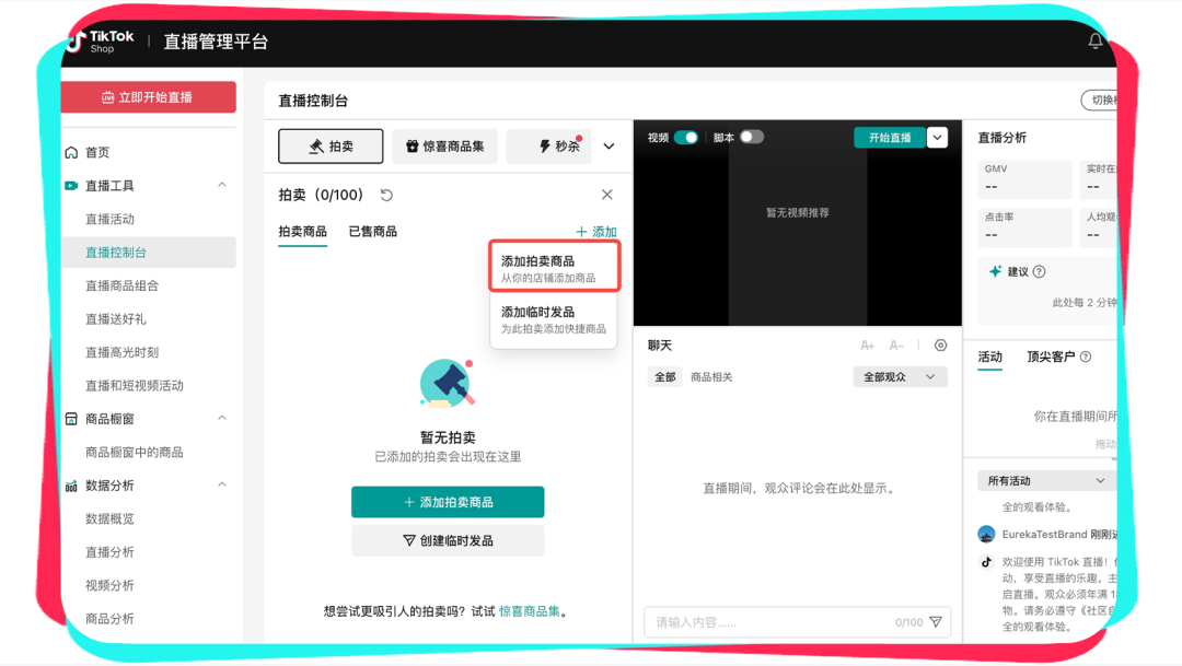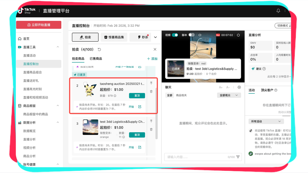 建议美区跨境POP商家尽快启用拍卖功能,只需三步即可轻松上手:创建拍卖商品、添加商品至直播控制台、开启拍卖炒热直播间气氛,抢先体验娱乐化带货的新玩法!