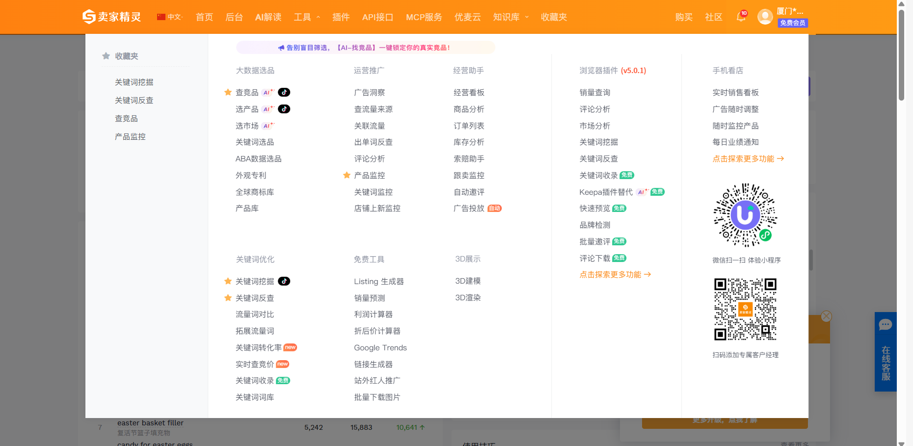 很多新手刚打开卖家精灵,会觉得功能太多不知道从哪下手,其实把它的核心功能理清楚,就会发现逻辑特别清晰,总共就五大核心板块,每个板块的用处和适用场景都很明确,新手一眼就能看懂。