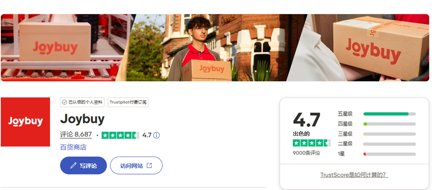 在欧洲上线两周后,Joybuy在权威评价平台Trustpilot上获得4.5分以上的高分,大批消费者点赞其配送效率。