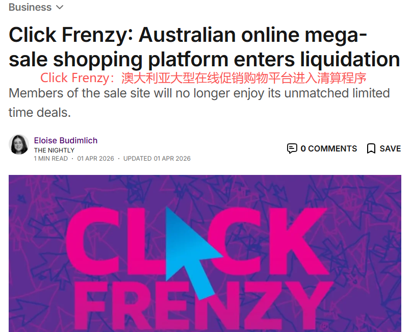 澳洲电商促销平台Click Frenzy宣布停止运营