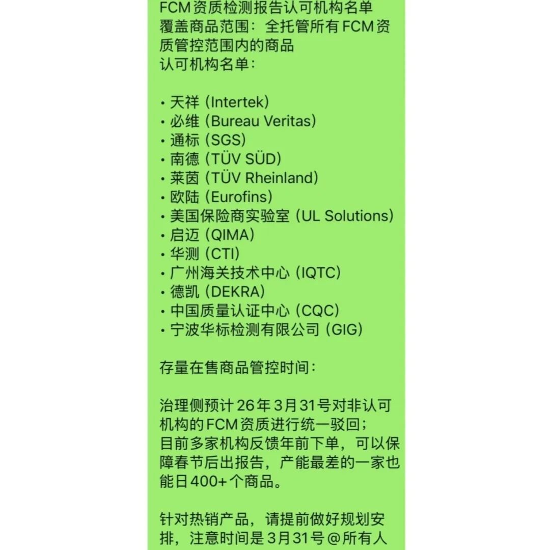 另外,针对欧洲站点销售的食品接触类产品,平台将强制管控FCM(食品接触材料)资质,且检测报告必须由平台指定检测机构出具,建议涉及此类目的卖家尽快核查合规情况。