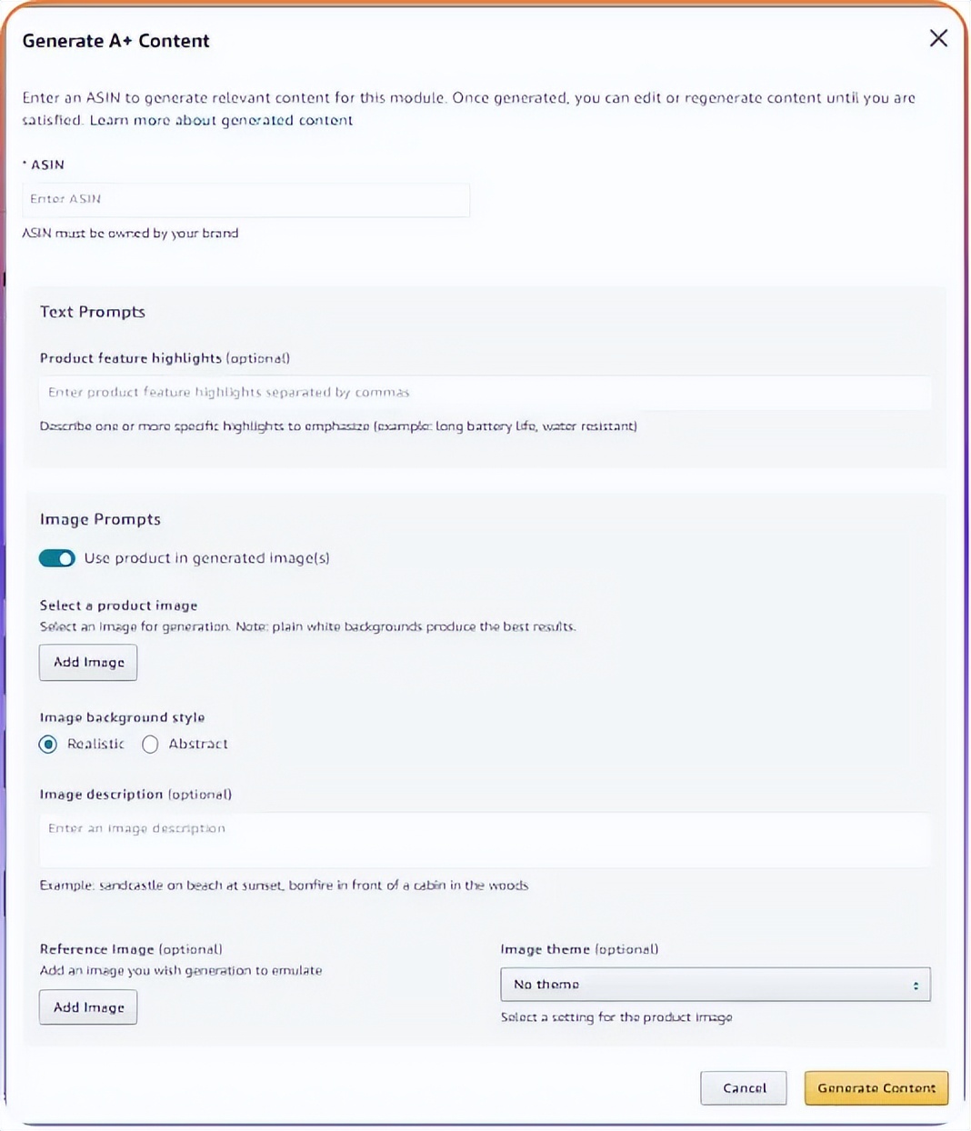 操作路径:卖家后台→广告→ A+页面→添加模块→选择带有“支持AI(AI Ready)”标志的模块(一键直达)