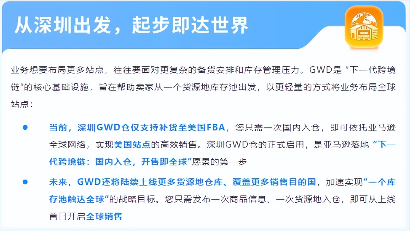 GWD仓落地深圳,不只是“多了一个仓”这么简单,而是将仓储分拨服务进一步前移到货源地,从成本优化、链路管控、运营灵活度、全球化布局等维度,让跨境链路更便捷、低成本、高效可控。
