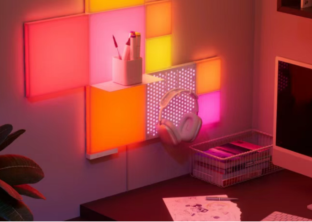 Nanoleaf的核心产品是一块块不同形状、颜色的灯板,可以自由拼接成任何图案——几何图形、动漫角色、游戏Logo、氛围墙……用户想怎么拼就怎么拼。