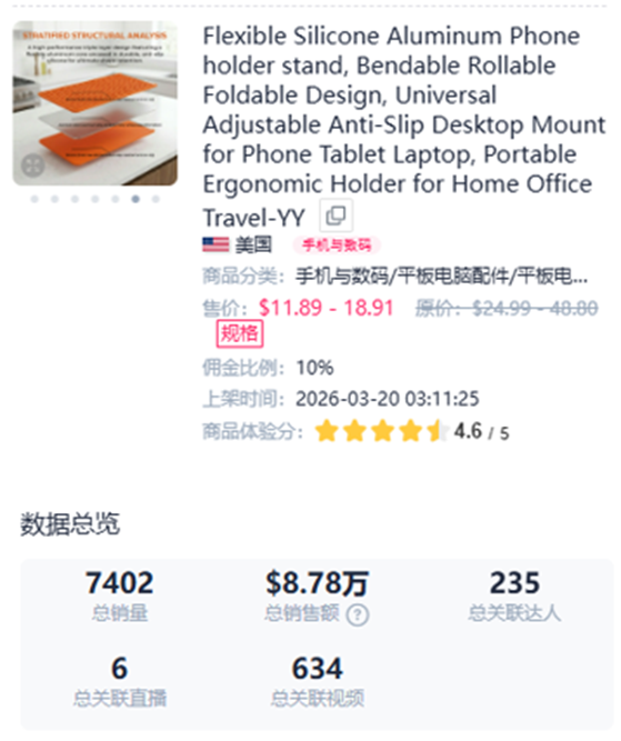 TikTok美区小众手机支架爆火,单日进账8.9万元