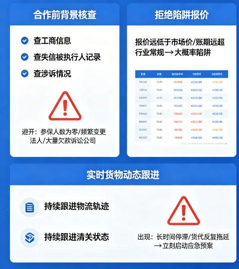 合作前必做背景核查。新货代合作前,一定要查工商信息、失信被执行人记录、涉诉情况,避开参保人数为零、频繁变更法人、有大量欠款诉讼的公司。