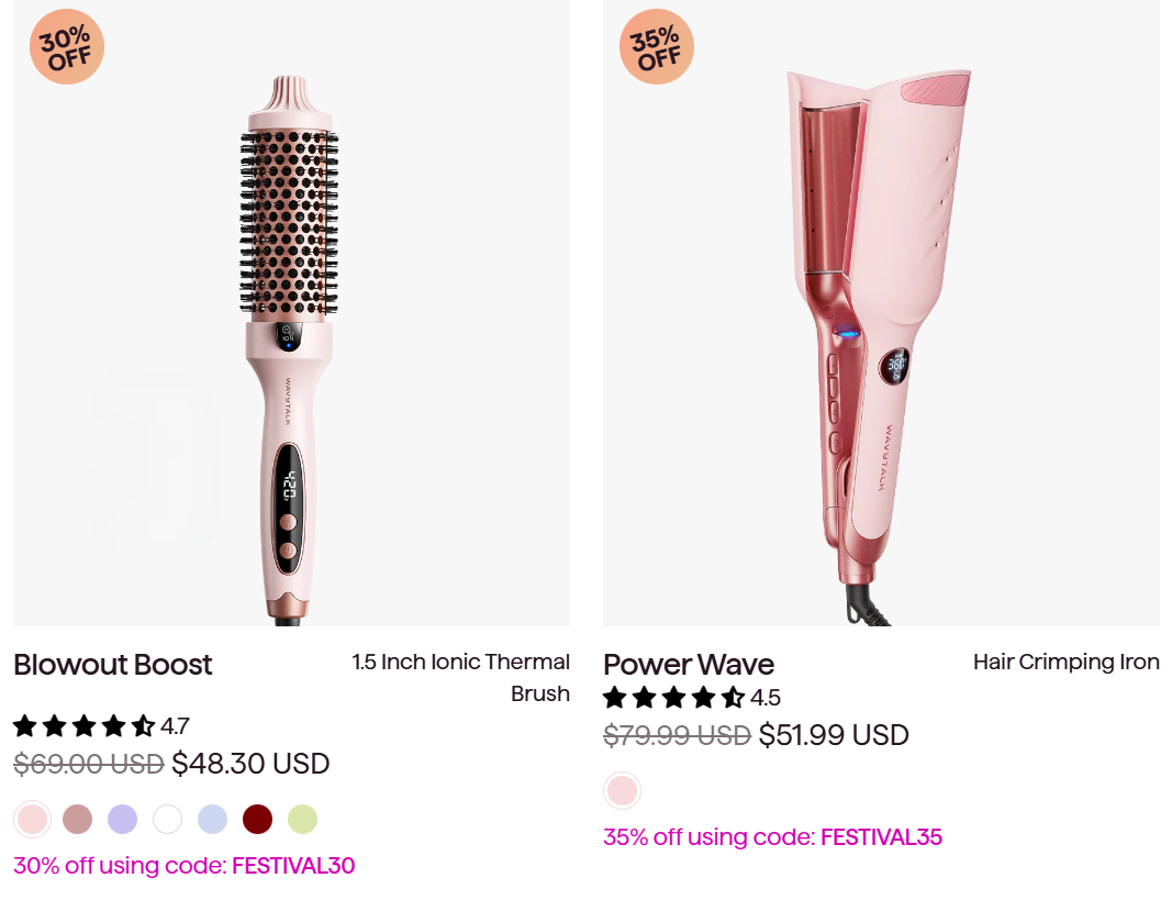Wavytalk将目标用户锁定在18到35岁的年轻美国女性,采用轻奢平价的定价策略,核心产品价格集中在30到70美元。