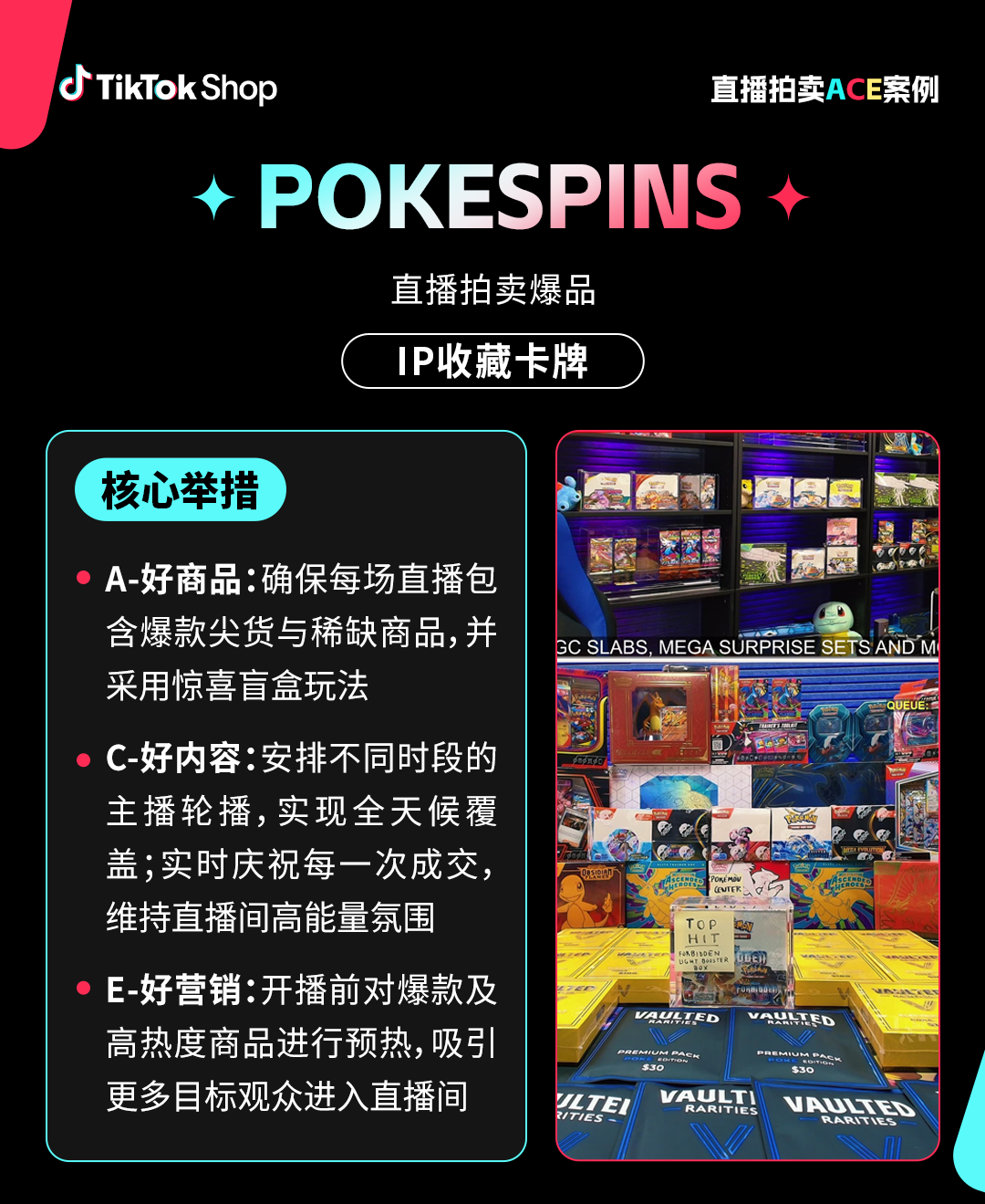POKESPINS:通过爆款/稀缺著名IP卡牌,借力倒计时拍卖,实现直播GMV增长220%