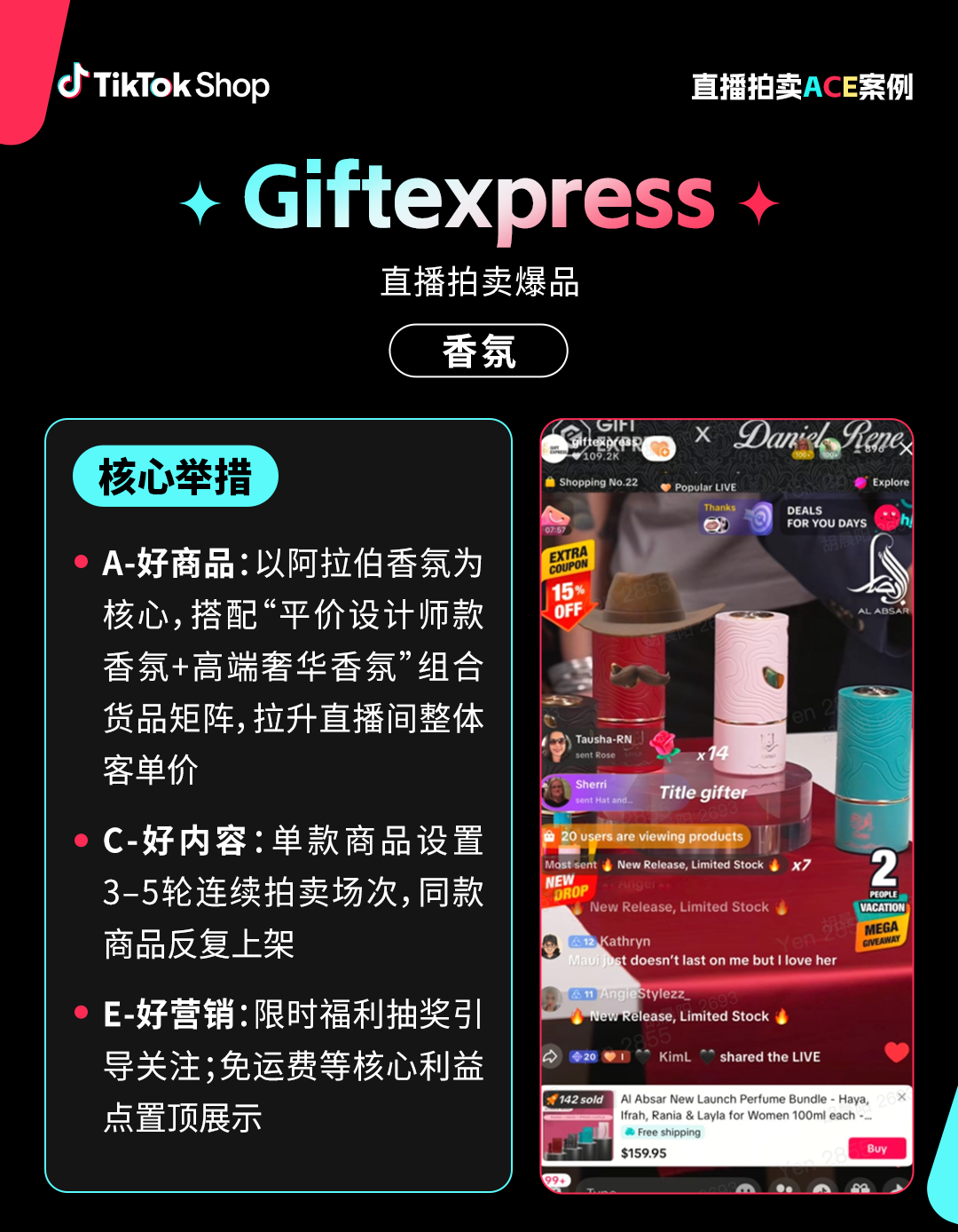 Giftexpress:精选高端奢华阿拉伯香氛产品,单款设置3–5轮连续拍卖,单小时直播曝光超9万次