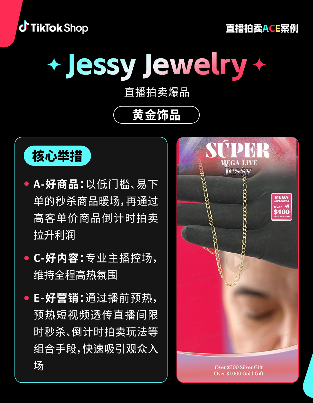 Jessy Jewelry:高客单价黄金饰品拉动利润,结合倒计时拍卖玩法,直播销售额增长780%