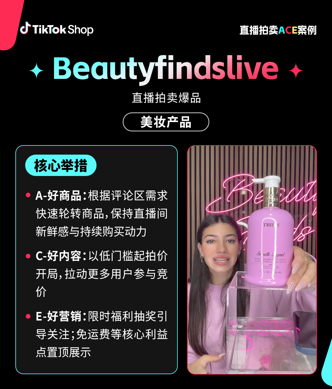 Beautyfindslive:品牌美妆吸引用户停留,低价起拍、快速轮转拍卖结合,单月直播GMV超90万美金