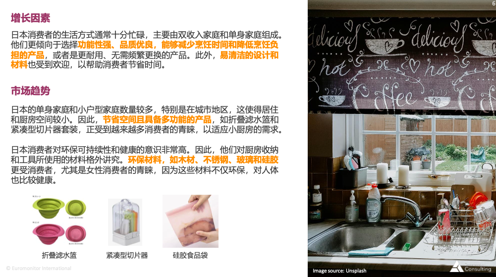 本次厨房用品报告聚焦“炊具、厨房收纳与工具、小型厨房电器”三大板块,对新时代厨房用品发展趋势进行解读,针对不同人群提供精准选品方案,如独居青年推荐紧凑便携型组合,家庭主妇侧重多功能、智能化用品等,助力卖家抢占千亿日元蓝海市场。