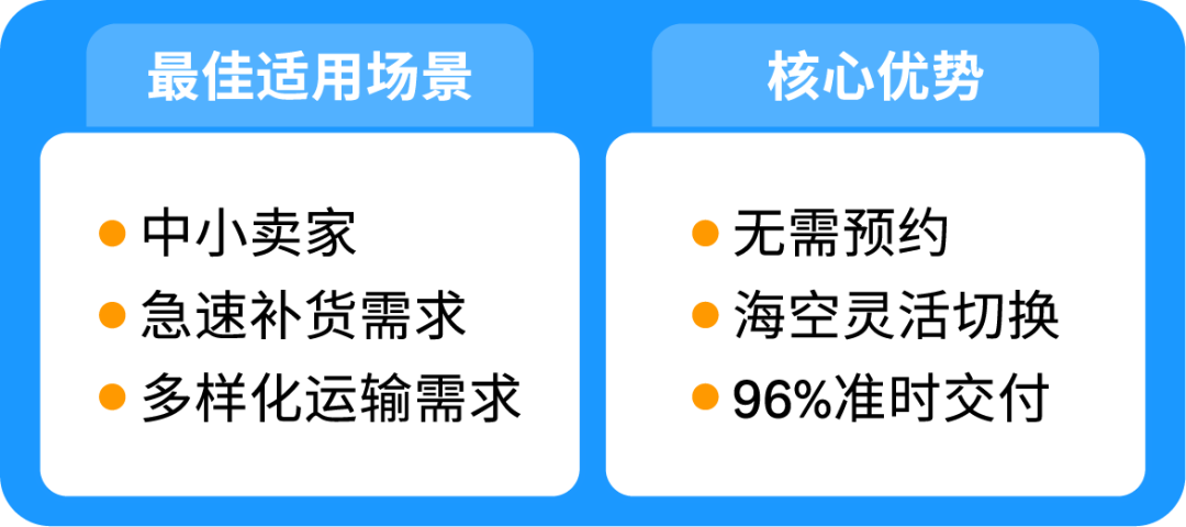 运输方式:起运量低,海空运互补可以满足卖家不同的发货需求。