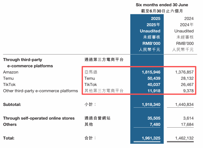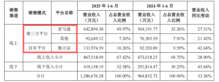 亚马逊还是主要渠道,贡献了49.97%的总营收