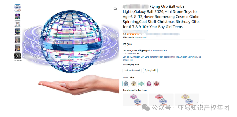 原告是一家成立于2016年的中国高新技术企业,主要从事电子设备制造、玩具制造及相关技术研发,拥有多项专利和商标。其核心产品Flying Orb Ball(指尖飞行陀螺)是公司推出的娱乐产品,凭借智能飞行技术和RGB灯效,在市场上广受欢迎。创新设计不仅有趣,还具有实用性,为用户带来全新的互动体验;飞行球通过不同的投掷角度和速度,能够实现多样化的飞行轨迹,玩家可以探索多种创意玩法。在夜晚,LED 灯光为它增添了一份神秘的魅力。