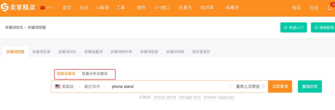 比如卖家的产品是手机支架,使用卖家精灵去挖掘更多关键词。