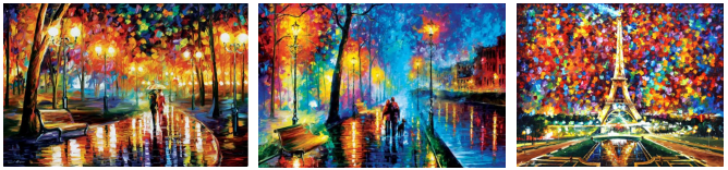 现代印象派画家Leonid Afremov以调色刀与油料结合的独特技法闻名,其作品以鲜艳色彩、光影层次和情感表达为核心,被誉为“用刀作画的色彩诗人”。