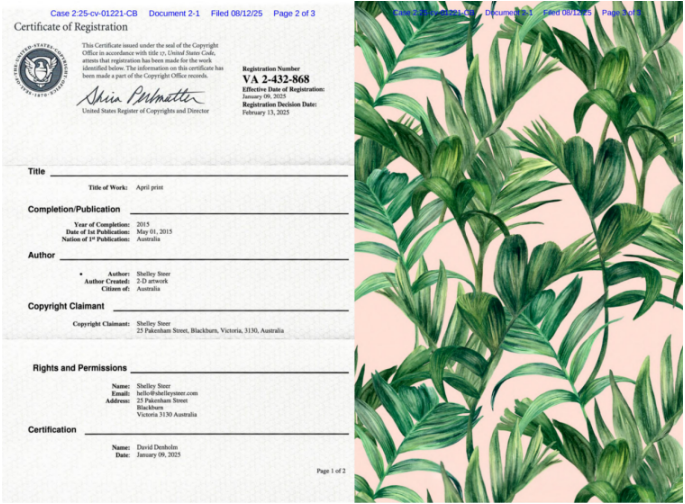 原告是美国纺织品设计公司,其核心品牌Fiesta Fabric在面料图案设计与营销领域深耕多年,专注于纺织面料图案的研发创新,巧妙融合多元文化元素,为服饰、纺织企业打造出深受市场欢迎的印花布料。