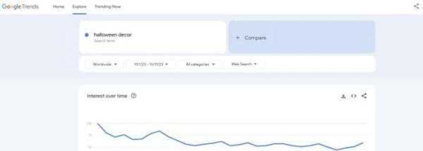 - 市场需求:Google趋势数据显示,在万圣节前夕,万圣节装饰品的搜索量大幅激增,家庭和派对主持人都在为庆祝活动做准备。