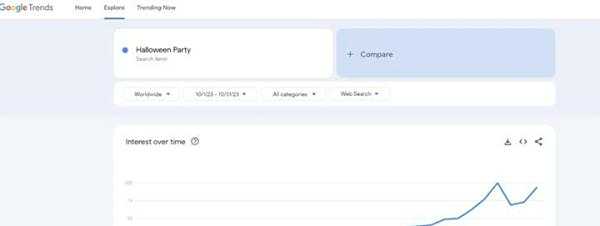 - 市场需求:零售商应至少在假期前几周开始销售派对用品,以利用这一需求高峰。Google趋势显示,派对用品的搜索量在假期前的几周内显着增加。