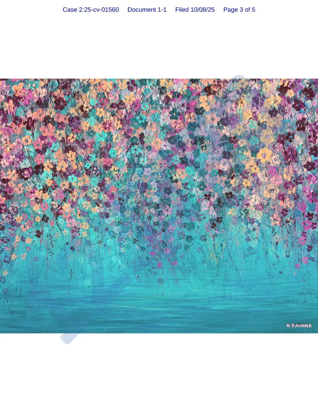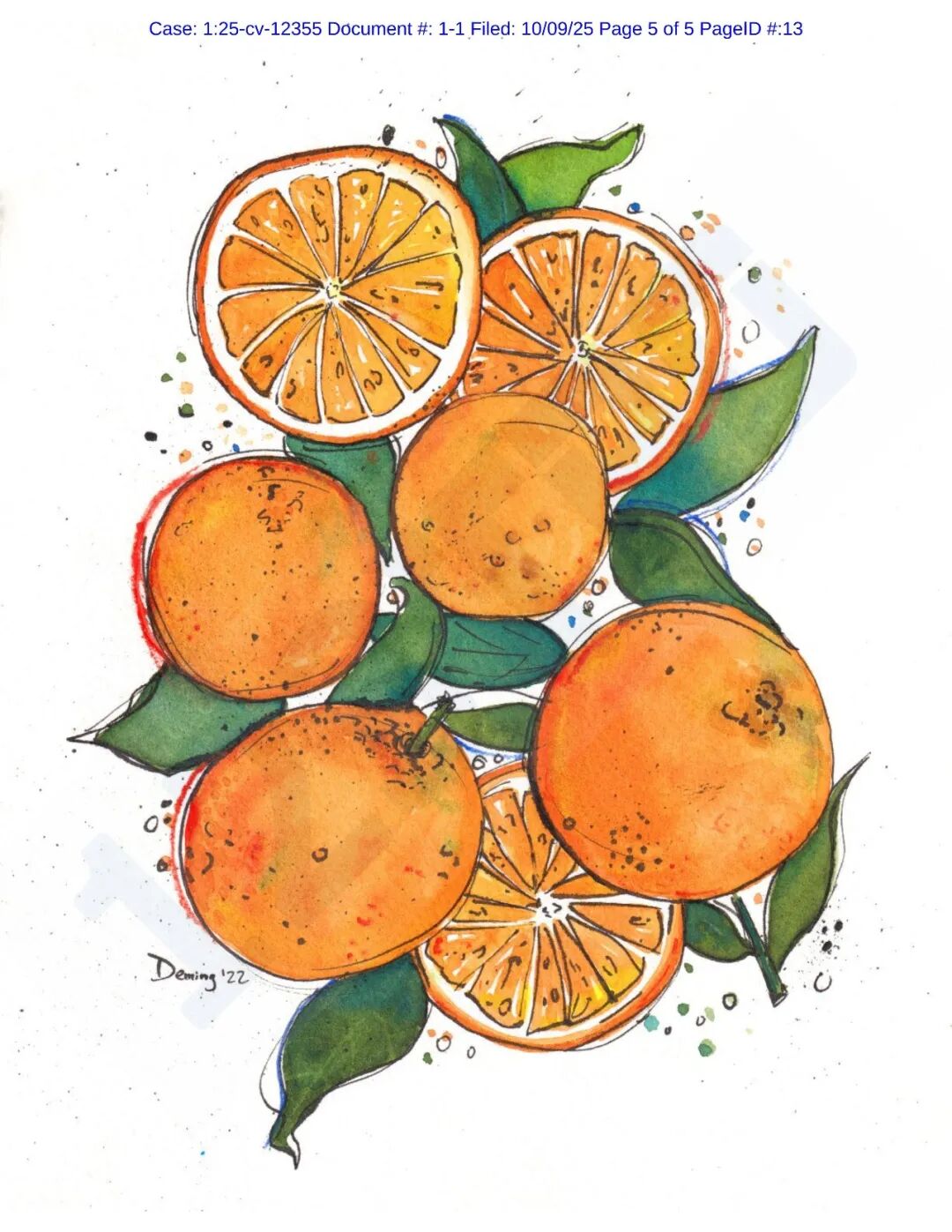原告Agata Wnuk是全职自由插画师,以 “Hello Cloudy” 和 “Cloudy” 为商业名称开展业务,擅长绘制可爱动物与植物。原告Andrew Deming是来自密歇根州的专业水彩画家,他的画作在艺术展、etsy及当地的礼品店均有出售原告Marla Orcutt长期深耕礼品行业及艺术设计领域,她的艺术作品曾多次授权给企业,用于日记本、抱枕、日历、马克杯等产品。原告Nicolette Rahner擅长印象派画布作品,他的作品曾在南非多家画廊展出 文章来源:信息来自于互联网,不代表全球定制网官方立场,内容仅供网友参考学习。如发现本站内容存在版权问题,烦请联系客服,我们将及时沟通与处理。如若转载请联系原出处。