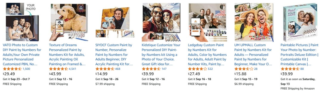 从数据来看,北美、欧洲等成熟市场的数字油画月销售量已超过80万套,平均客单价维持在8-12美元之间。与之对比,工厂端的生产成本往往不足2美元。简单的画布、颜料、画笔三件套,通过POD的渠道与包装,就能创造出4-6倍甚至更高的毛利空间。