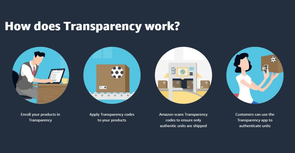 亚马逊透明计划是一项产品序列化服务,旨在在商品运送给顾客之前验证其真实性。该计划于2017年推出,目的是应对日益增多的假冒商品问题。无论品牌拥有者还是第三方卖家销售受保护产品,这些商品都必须通过身份验证才能进入交货阶段。