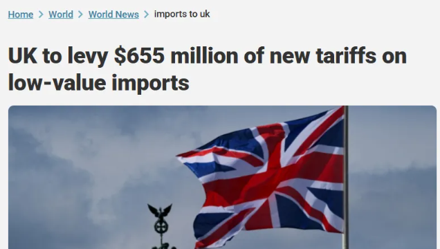 英国计划取消价值低于135英镑的进口商品的关税豁免,预计每年可增收约5亿英镑(合6.55亿美元)。